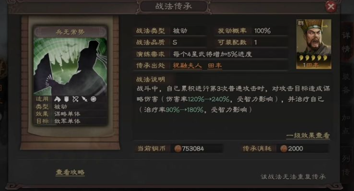 若没有或不想使用兵无常势战法,完全可以通过合理选择其他战法来实现替代,其核心思路是抓住该战法稳定谋略输出与自我治疗的两大关键点进行拆分或组合弥补。兵无常势的价值在于每三次普通攻击触发一次高额谋略伤害和兵力恢复,因此寻找替代品时需从输出稳定性和续航能力两方面入手。