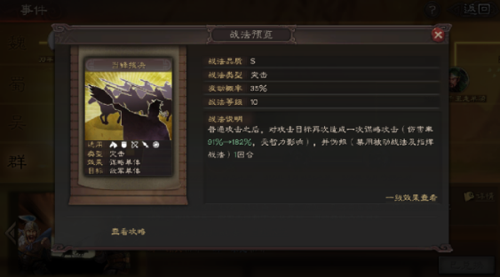选择具体的替代方案时,必须考虑携带武将的自身特点。兵无常势适合具备连击能力、智力较高或需要较强自保能力的谋略型武将,例如太史慈、孙权、诸葛亮、司马懿等。替代战法也应与武将特性相匹配。对于拥有连击的武将如太史慈,可以优先选择当锋摧决或克敌制胜来最大化普攻收益。对于智力出众的武将如诸葛亮或司马懿,用武通神、士别三日等高伤害率谋略战法能充分发挥其属性优势。如果司马懿缺少士别三日,用兵无常势过渡也是一个提供稳定输出和续航的保底选择。