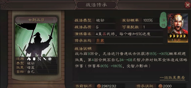 一种直接的替代思路是选用其他伤害稳定的谋略输出战法来填补伤害缺口。例如用武通神和士别三日是常见的备选,它们同属被动或指挥类型,发动稳定。用武通神在八回合内能提供可观的累积伤害率,士别三日则在提供前三回合规避的同时,于第四回合打出高额爆发,并附加智力属性加成。这类战法通常不附带治疗功能。当选择这类纯输出战法作为替代时,必须意识到队伍会损失兵无常势带来的续航,需要在其他位置进行补充。