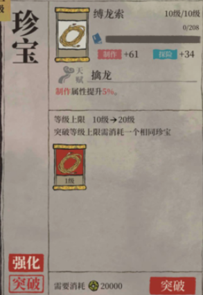 阿朵最适合的珍宝是缚龙索,它能主要提升她的制造属性,增强她在建筑制作和资源生产中的效率。另一个优选是风火轮,它主要强化冒险属性,帮助她在探索任务中更快完成采集。其他可选珍宝包括唢呐和盘盏,它们能提供一定的冒险或制造加成,让玩家根据实际需求调整配置。