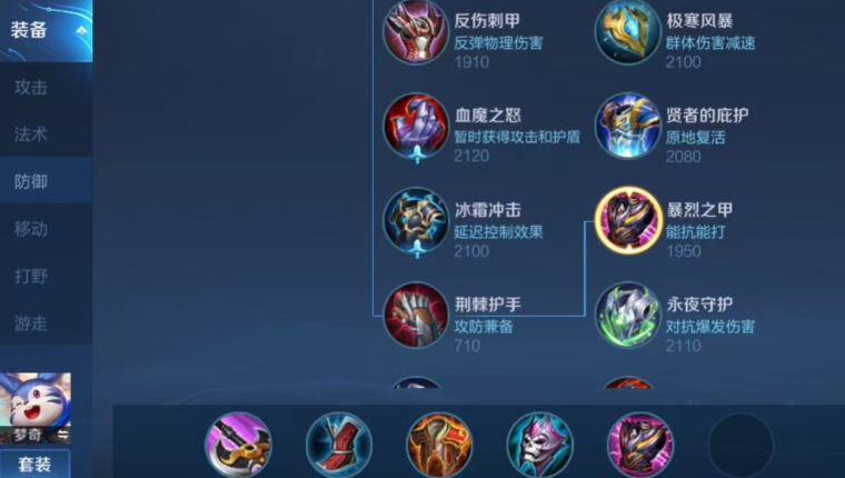坦克流梦奇的出装首要目标是提升生存能力,使其能承受大量伤害并为团队提供控制。装备选择以高生命值和高双抗为主。红莲斗篷能增加清线能力并对周围敌人造成持续伤害。反伤刺甲能有效克制物理输出英雄,反弹所受伤害。魔女斗篷是针对敌方法师的核心魔抗装备。不祥征兆在受到攻击时能减速敌人,增强留人能力。极寒风暴提供冷却缩减、法力值和物理防御,其被动减速效果也能辅助控制。鞋子通常选择影忍之足或抵抗之靴。