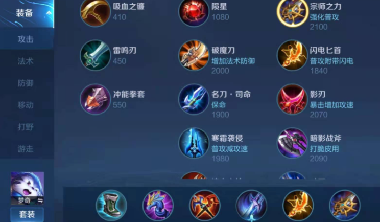 AD流梦奇则依赖普攻输出,尤其注重攻速、暴击和物理攻击属性。其出装思路类似于部分战士或射手,通过高攻速快速打出第三次普攻的横扫效果并刷新一技能护盾。核心装备通常包括闪电匕首、无尽战刃和宗师之力,这三件装备能大幅提升攻速、暴击率和普攻爆发伤害。暗影战斧提供冷却缩减、生命值和物理穿透,是前中期过渡的优质选择。后期可补充泣血之刃增强续航,或选择破军来对低血量目标造成毁灭打击。鞋子通常选择急速战靴或抵抗之靴,以平衡输出与生存。