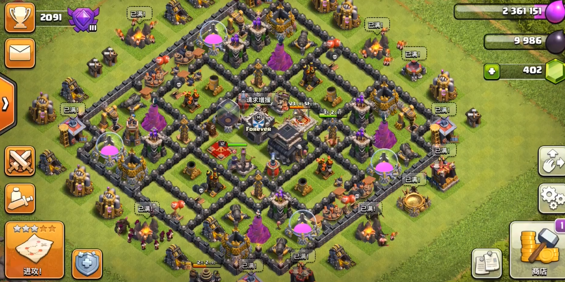 护资源阵是常见且实用的布局,其设计思路通常是将大本营内置在阵型中央,周围用城墙和防御建筑层层保护,而将部分资源建筑或非关键建筑置于外围作为缓冲,以延缓敌人的进攻并为防御争取时间。另一种思路是格子阵,它将基地划分为多个相对独立的单元格,这种布局对于日常防御和资源保护有一定效果,尤其适合不希望投入大量精力在冲杯或部落战上的玩家,其特点是结构清晰,易于构建。