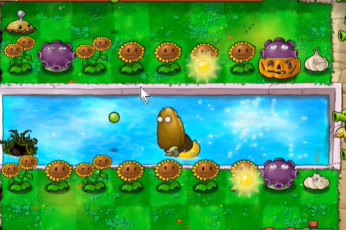 游戏进入中期后,重点是巩固防线并优化资源管理。阳光充足时,可以在水路补充种植向日葵以进一步提升阳光产量,并搭配种植大蒜来分散僵尸的进攻路径。香蒲能提供稳定的远程支援,应尽早种植。此阶段需稳扎稳打,避免贪图快速推进,所有攻击和防御植物的布置都应服务于构建坚固且可持续的输出阵型。要谨慎使用樱桃炸弹和火爆辣椒等范围杀伤植物,最好将其保留用于应对紧急情况或僵尸集中的波次。
