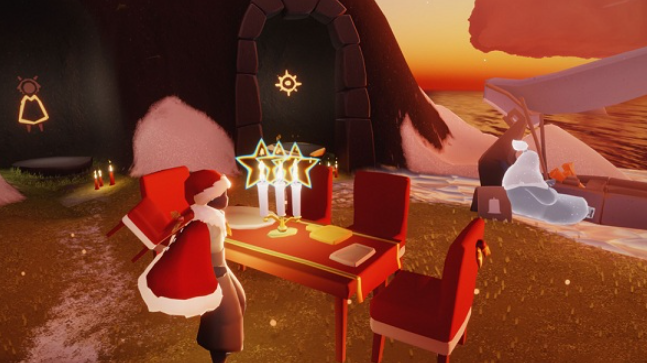 圣诞椅也很有价值。它是一个永久性的道具,只要你用蜡烛把它换到手,它就会一直在你的背包里,不用担心活动结束了就会消失。这意味着你每年圣诞节都可以把它摆出来应景,平时想用也随时可以用。它的外观和普通的椅子皮肤不太一样,带有专属的圣诞桌布和垫子,算是一个挺特别的收藏。兑换它也不需要你先拥有普通椅子,换到手就可以直接用了,对于收集党来说,是节日期间一个不错的永久性收藏。