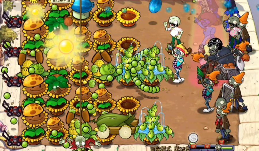 当阳光储备逐渐充足后,你的防守重心需要转移到中场,构建起核心火力输出带。此时应在中间区域补充玉米卷香蒲和三行玉米投手作为主力。玉米卷香蒲拥有对抗空中单位的能力,而三行玉米投手不仅能造成稳定伤害,其投掷的黄油的短暂定身效果也能有效打乱僵尸的进攻节奏。在布置攻击植物的同时,上下两排应当尽早种植冰冻西瓜大喷菇,其大范围的溅射攻击附带的减速效果,可以显著缓解僵尸集群的推进压力,为其他植物创造更安全的输出环境。
