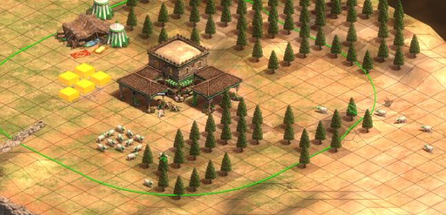 开局阶段你处于城堡时代,拥有少量部队和农民,但没有城镇中心,因此首要任务是迅速建立经济。立即指挥农民建造城镇中心,理想位置是靠近金矿的区域以便后续开采,同时派遣初始部队探索地图,尽快找到散布的绵羊以保障食物供给。敌人早期的骚扰会很快到来,你需要利用开局拥有的骆驼兵、骑士等部队进行防御,消灭前来进犯的小股敌军,为经济发展争取时间。资源采集方面,要优先保证食物和木材的稳定产出,并尽快采集石头,为建造关键防御建筑做准备。
