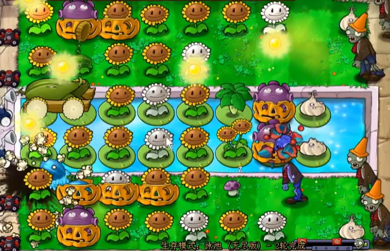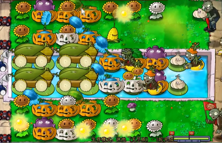 成功渡过开局后,策略应迅速向中期过渡,核心是升级阳光生产和部署主力输出。当阳光储备达到一定程度后,应开始逐步将部分普通向日葵替换为双子向日葵,以大幅提升阳光产出效率。可以开始部署如冰西瓜这类具备全局减速效果的核心控场植物,它能有效缓解多路僵尸的推进压力,为其他攻击植物创造更长的输出时间。水路防御需要进一步巩固,继续补强忧郁菇的覆盖范围,并开始考虑为关键植物套上南瓜头进行保护。陆地则需要开始构建以玉米加农炮和地刺王为代表的核心输出与反制体系,但初期应谨慎投资,确保阳光储备足以支撑后续的持续运营与修补。