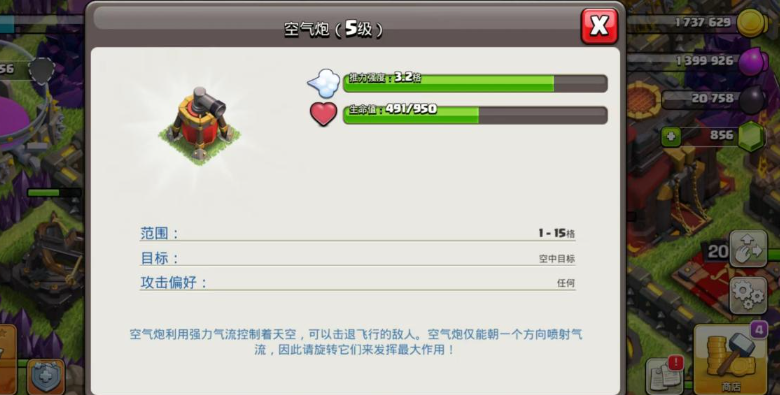 空气炮对于打乱黑龙的进攻节奏具有显著的战略价值,其吹风效果能迫使黑龙改变飞行路径,延缓推进速度,在布置时需要让它们的覆盖范围尽可能重叠,形成无死角的防御带,并且将它们朝向阵型外部的主要入口,可以使黑龙在进入防御核心区之前就受到持续的干扰,为其他防御建筑创造宝贵的输出时间。