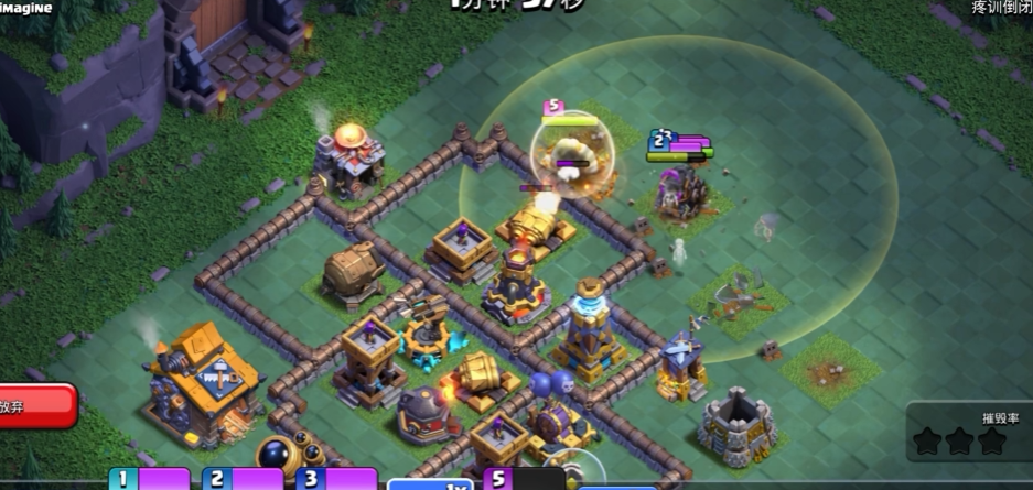 法术搭配与释放细节是战车发挥作用的关键,核心携带狂暴、冰冻、治疗三类法术,战车推进至核心防御群时释放狂暴,提升战车与援军破墙输出速度,面对单头地狱塔、天鹰火炮时及时冰冻,延长战车存活时间。主力部队跟进后释放治疗,维持前排血量,避免因防御集火导致部队溃散。战车行进至大本营附近时无需等待自动解体,手动触发释放援军,让部队在安全位置落地输出,防止援军被大本营防御瞬间集火消灭,同时把控战车释放角度,避开多头地狱塔与巨型炸弹陷阱,减少行进过程中的损耗。