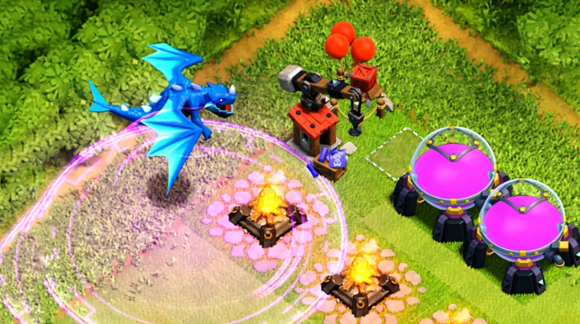 雷龙流派的标准配兵以7至8条雷龙为主力,搭配12至14个气球与1至2个龙宝,法术选择3至4瓶狂暴、3至4瓶冰冻与1瓶毒药,攻城器械优先选用大气球或飞艇,援兵补充雷龙、气球与冰冻法术。进攻前先观察阵型布局,优先选择建筑密集的阵型发起进攻,此类阵型能最大化雷龙链式闪电的覆盖范围,避免因建筑分散导致伤害断层,同时标记防空火箭、单头地狱塔、空气炮等关键威胁,规划好主力推进路线,避开空气炮正面吹风方向,减少雷龙被持续拉扯的风险。
