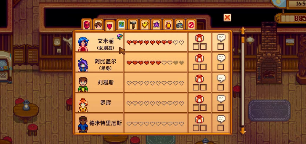 十心剧情的具体内容因角色而异,通常包含重要对话选择和情感互动。山姆的十心剧情会在他卧室中触发表白情节,玩家需做出是否回应的选择;哈维的剧情则围绕克服恐高症展开,玩家将与他共同体验热气球冒险。这些剧情不仅影响角色关系发展,也揭示了NPC的背景故事和性格特点。