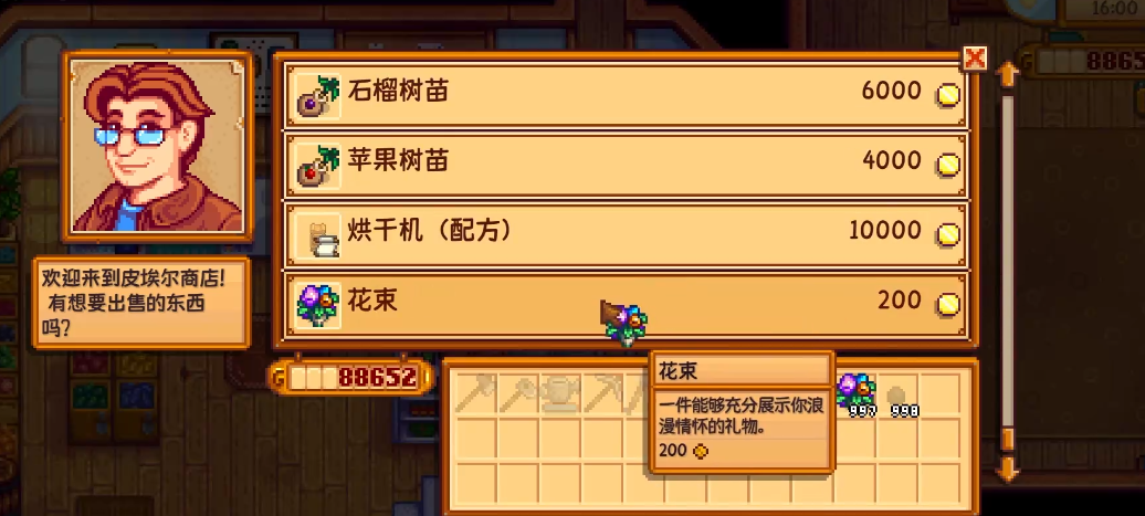当与NPC的好感度达到8颗心后,需要购买花束从皮埃尔商店解锁后续两颗心的培养资格。花束赠送成功后,继续通过对话和送礼将好感度提升至10颗心。部分NPC的十心剧情需要特定天气或时间触发,如塞巴斯蒂安的十心事件要求在晚上8点至午夜前往山区,而哈维的剧情则需在上午9点至下午5点到达铁路区域。