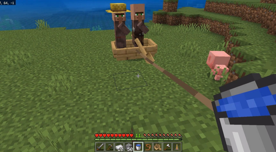 如果觉得矿车麻烦,也可以用船来运村民。找到村庄后,把村民推到船上,船会自动浮在水面,拉着船就能带村民移动。一艘船只能载一个村民,别塞太多。遇到陆地时,可以用方块搭个临时通道,让船顺利通过。到目的地后,记得用方块围住船,不然村民可能会溜走。