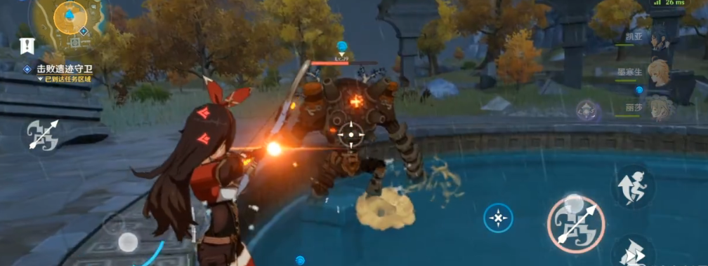 地形卡位是应对多个遗迹守卫的有效方法之一。将敌人引至狭窄区域或障碍物后方,利用环境阻挡其攻击路径。某些任务场景中的树枝、岩石或建筑结构可以阻挡遗迹守卫的冲锋和飞弹。切换弓箭角色远程攻击核心,同时注意躲避偶尔漏过的飞弹。若处于水域附近,可引导敌人进入水中,利用冰元素角色冻结它们,限制其行动并创造输出窗口。