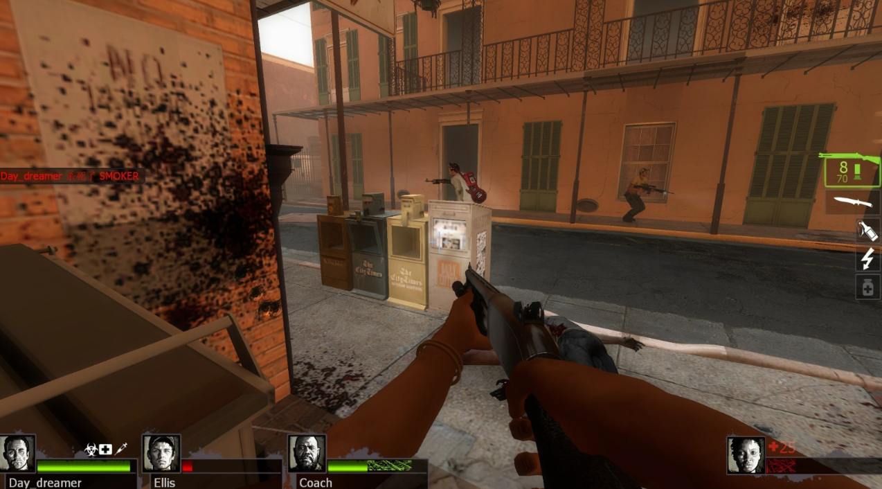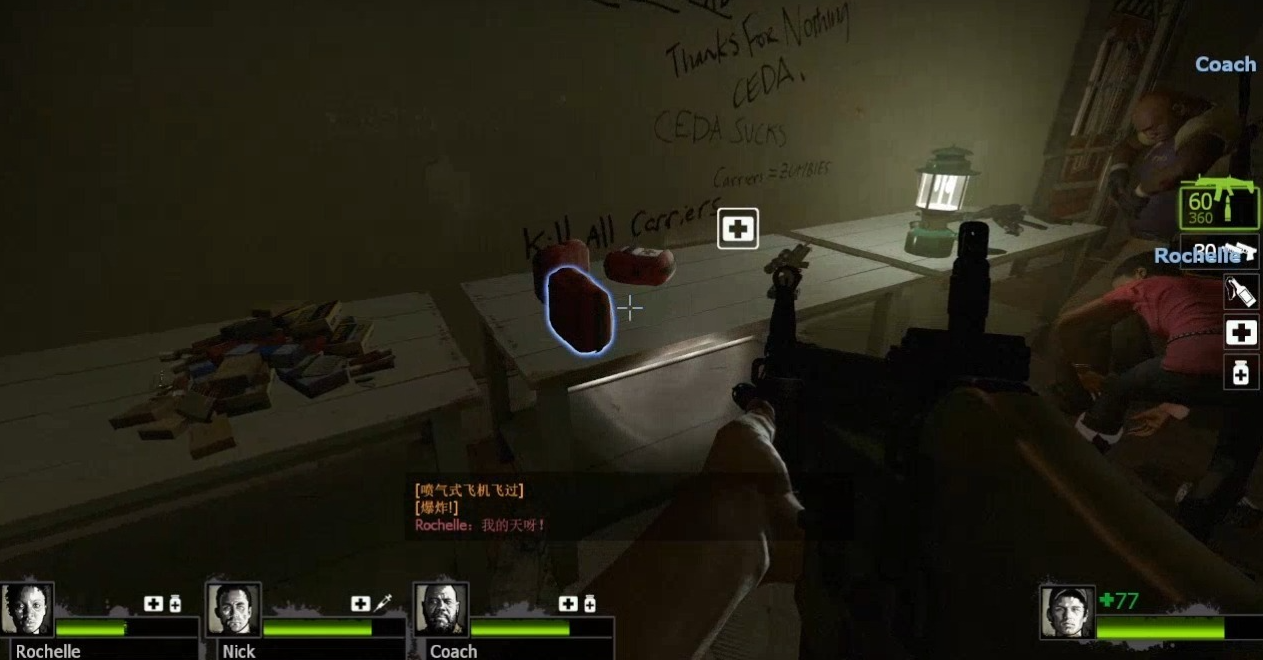 接下来咱们要穿过一片墓地,这里地形复杂,僵尸会从四面八方涌来。建议保持团队紧凑,别分散行动。墓地尽头有一栋小屋,进去后触发警报,大量僵尸会围攻过来。守住门口或角落,优先解决特殊感染者,等僵尸潮结束后再继续前进。