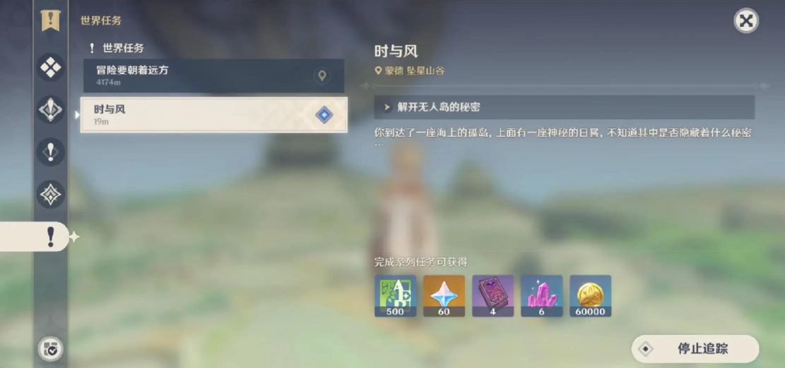 触发时与风任务需要前往摘星崖东侧的无人岛,该岛屿在地图上无标记,需从摘星崖顶端向东飞行或通过凯亚的冰元素技能凝冰渡海抵达。登岛后与中央日晷交互触发任务,随后在日晷右侧沙滩的碎石堆中击碎石块获取残破的笔记,阅读后即可正式开启任务流程。任务核心机制围绕时间与风元素展开,需严格遵循游戏内时间系统与元素视野的配合。