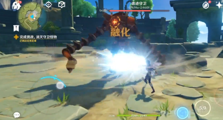 走位和躲避特别重要,看到守卫抬脚就要准备闪避它的踩踏攻击,双手合拢前摇明显的是拍击技能。最麻烦的是它的旋转攻击和大风车,这时候要么跑远点,要么赶紧躲到障碍物后面。导弹追踪阶段记得蛇形走位,或者用岩造物挡一下。实在躲不开的话,提前吃个防御料理也能减少不少伤害。