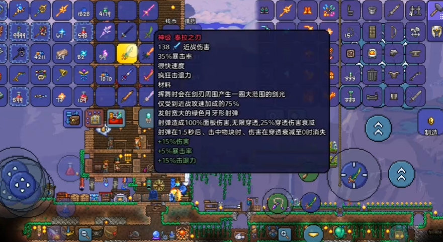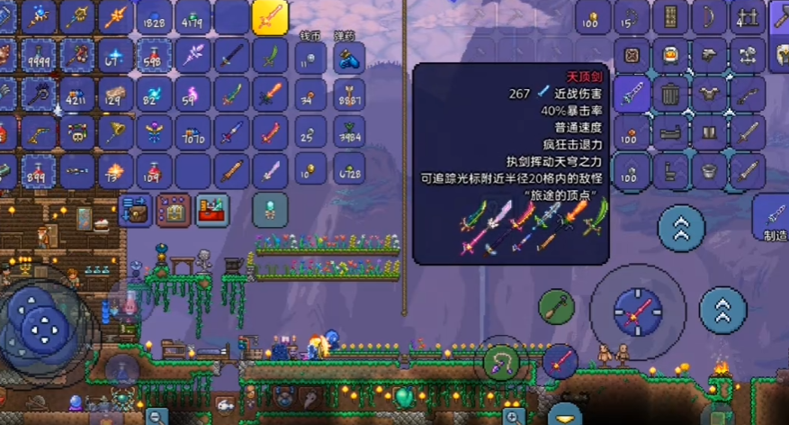 合成天顶剑,首先得准备好十把关键武器:泰拉刃、彩虹猫之刃、狂星之怒、波涌之刃、无头骑士剑、种子弯刀、星怒、养蜂人、附魔剑和铜短剑。这些武器分布在游戏的不同阶段和场景中,有的需要击败特定BOSS,有的则藏在特殊地点。收集齐全后,在秘银砧或山铜砧上就能直接合成天顶剑,这可是当前版本最强的近战武器之一,攻击特效炫酷,伤害爆炸。