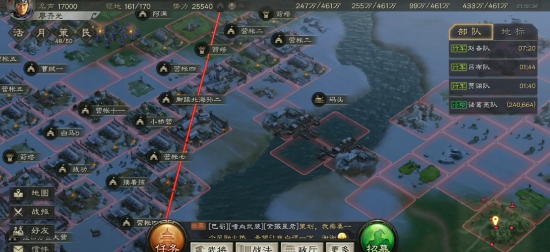 资源调配方面,攻打箭塔需提前储备充足策书和体力。每次拆除行动消耗3策书,而多队轮战需协调体力恢复时间。建议在攻打前通过屯田或商贾系统补充石料、木材等资源,确保营帐、拒马等辅助建筑能及时修复。若面对密集箭塔群,可优先拆除外围孤立箭塔,逐步瓦解防御体系,避免同时触发过多箭塔的联防机制。