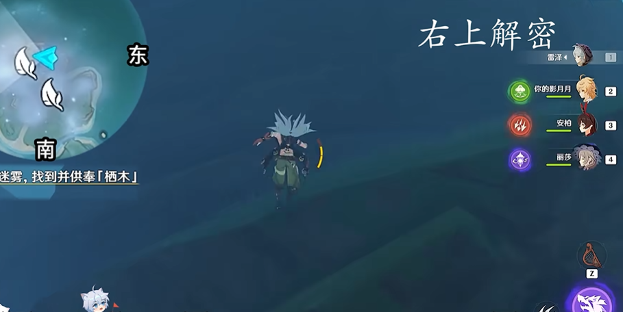 到了鹤观岛后,你会发现这里被浓雾笼罩,直接乱闯可是会迷路的。这时候需要接取世界任务要求特别多的作家,跟着任务指引找到岛上的栖木并供奉羽毛。羽毛散落在各处,用元素视野会更容易找到。每供奉一处栖木,周围的雾气就会消散一部分,探索起来也更方便。