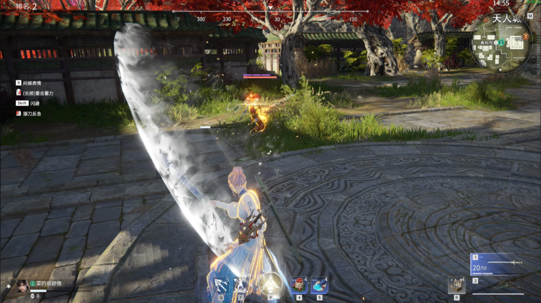 连招方面有个简单实用的套路:左键两下接蓄力剑气,利用硬直让对手反应不过来。升龙斩也挺好用,左键起手接蹲伏右键挑飞,空中补刀后落地继续蓄力。别贪第三下平A,那个回旋斩破绽大容易被振刀。进阶点可以试试骗振刀技巧,蓄力后突然滑步取消,等对方习惯性振刀时再出真招。