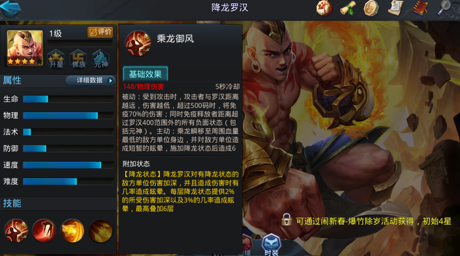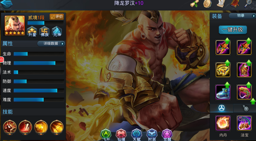 降龙罗汉作为乱斗西游2中的先手输出型战士,其技能机制具备高爆发与强控场能力,合理配置技能顺序与装备搭配是发挥其战力的核心。该英雄的核心优势在于先手突进、免疫控制及多段增益效果,适用于排行榜、修罗等高强度对战场景。