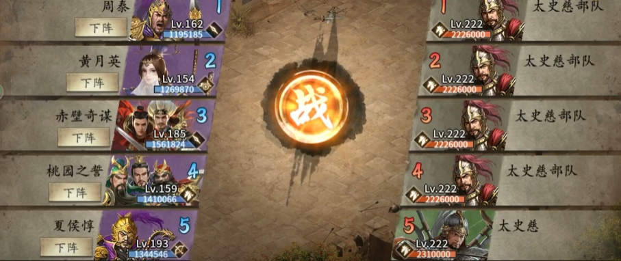 对于硬件不足的小伙伴,可以尝试低配打法:用司马懿带曹仁副将首发反弹战法,二车黄月英灵龟套扛伤害,三车周泰收尾。这套阵容更依赖司马懿的反伤和月英的续航,需要多尝试几次才能过关。关键是把最好的御宝给司马懿,并确保关羽战法命中。