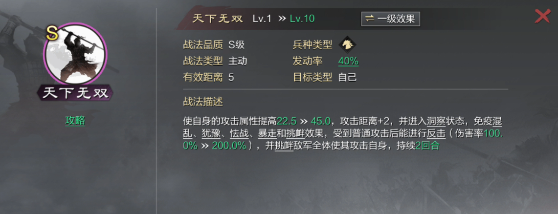 兵种选择方面优先考虑长弓兵,前四回合的输出加成特别适合他的爆发特性,还能让他在防守时先手行动。死士虽然也不错,但整体效果不如长弓兵来得实在。装备选择上要着重强化攻击属性,破军、无尽战刃这类加攻击的装备是首选,同时也要适当搭配护心镜、不死鸟之眼提升生存能力。记住别给他带追击类战法,这类技能和他相性不合,换成主动输出技能效果更好。