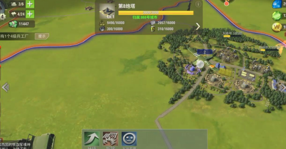 炮兵阵地的射程加成机制是战术执行的重要保障。基础榴弹炮射程为220,1级阵地可提升至260,5级阵地可达280,配合军官技能最高能突破300射程阈值。这种超视距打击能力使其能够无伤攻击四级炮塔或15级叛军城市,但必须严格保持与目标的距离缓冲,避免被突进单位贴脸。阵地建设位置需选择森林地形以获得攻击加成,同时要避开公路等易被装甲部队快速突破的区域。雷达站则应部署在阵地侧翼或后方高地,确保视野覆盖主要交战方向。