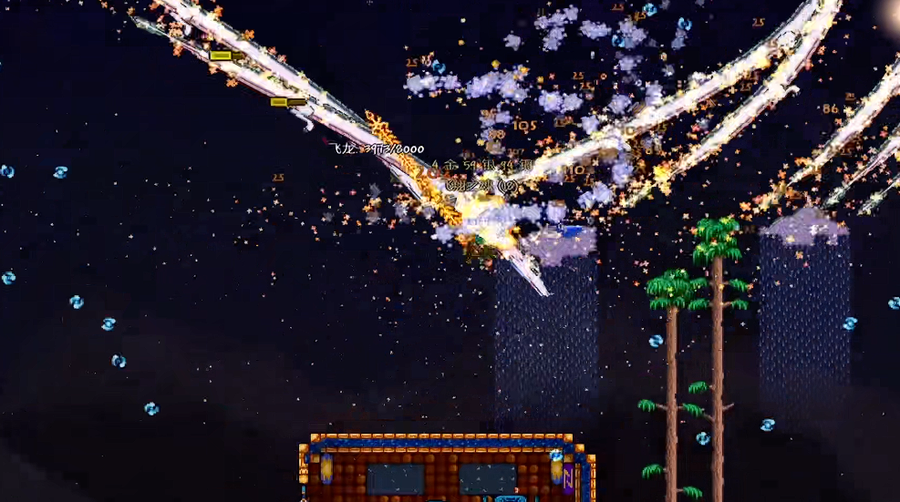小白龙的行动模式很有特点,它会像蛇一样扭动着冲过来,绕个圈再继续攻击。如果站着不动,它会围着咱们画∞符号;要是快速飞行,它就会紧追不舍。最麻烦的是即使用魔镜传送回家,它也会跟过来,所以最好在高空找个落脚点再打。推荐用空岛或者自己搭的平台,方便走位躲避。