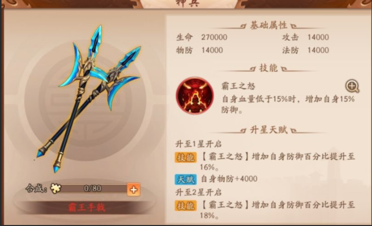 夏侯惇与张辽负责前排减怒减伤,限制敌方输出能力;典韦与夏侯渊补充伤害并进一步削弱敌方怒气;郭嘉作为辅助提供全体降怒与光环加成。这种战术体系能有效打乱敌方节奏,尤其在面对高爆发阵容时,通过持续压制可降低敌方威胁。神兵搭配推荐手戟与古锭刀,前者增强生存能力,后者提升残局收割效率。