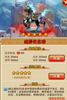 绝影是另一款值得考虑的战马,其特点是极高的速度和暴击加成。绝影的机动性使其在快速突袭和收割残局时表现优异,尤其适合搭配关羽的群体伤害技能。绝影的防御加成较低,对关羽的站位和阵容保护要求较高,需谨慎使用。若阵容中有刘备或黄月英等辅助武将提供护盾或治疗,绝影的劣势可得到一定弥补。
