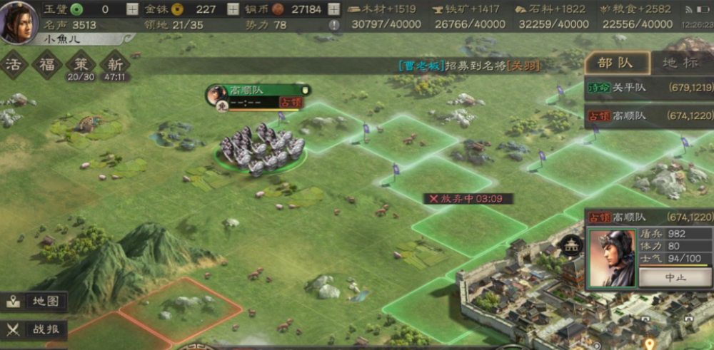 声望高了自然能管更多地盘,每多100点名声,你就能多占一块领地,这可是实打实的提升。当你发现领地数量已经顶到上限,没法再占新地的时候,千万别愣着,得主动对现有的地盘动动手术,进行一波优化升级。这时候,把那些低级的资源地,比如一级、二级、三级的地,或者一些没啥用的空地盘,主动放弃掉,是个非常有效的操作。放弃之后等上十分钟,你的领地总数限制就会暂时降低,这就在你密密麻麻的版图上撬开了一道口子,让你有机会去攻打并占领更高级的土地。你要知道,高级地的资源产量和提供的势力值,比低级地可高出不止一星半点,用高级地替换低级地,是实力成长的必经之路。