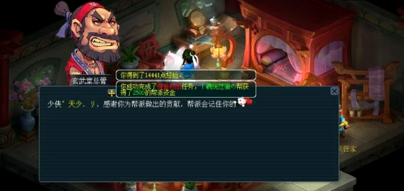 完成任务后,玩家会获得经验值和帮贡奖励,这些帮贡是学习帮派技能和提升修炼的关键资源。帮派也会从中受益,增加安定度或资金。奖励的帮贡数量因任务类型而异,平均下来,队长每轮可获得较高点数,队员则稍低,这使得厢房任务成为快速积累帮贡的途径之一。任务主要提供经验和帮贡,没有金钱奖励,因此更适合新入帮派的玩家过渡使用。