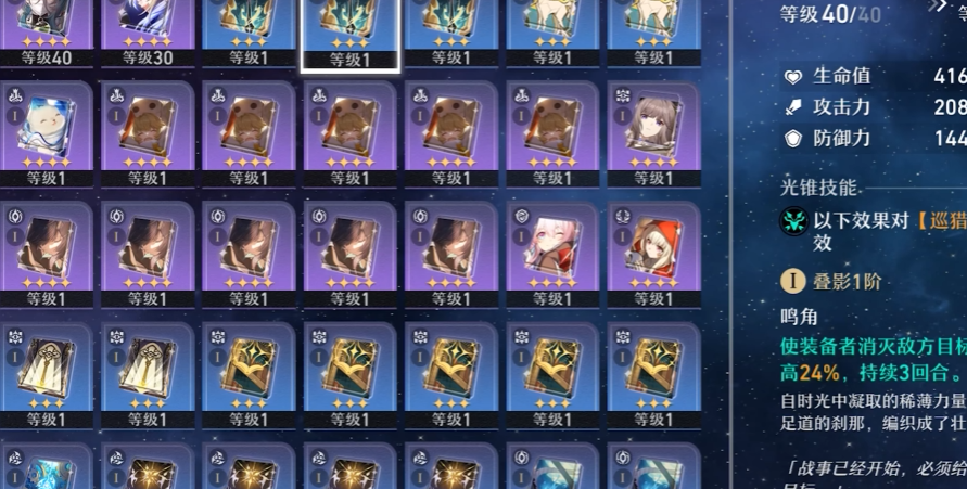 对于存护命途的护盾角色,光锥的核心属性是防御力,因为护盾值跟防御力直接挂钩。杰帕德的专武制胜的瞬间就是典型,能大幅提高防御力和嘲讽能力。一些四星光锥如余生的第一天也能提供稳定的防御加成和全队减伤。在资源有限的情况下,培养光锥也要有优先级。通常建议优先培养主力输出角色的光锥,因为输出提升对战斗效率的影响最直接。辅助和生存位的光锥可以稍后一步,而且很多四星光锥效果已经足够好用,获取和叠影也相对容易。