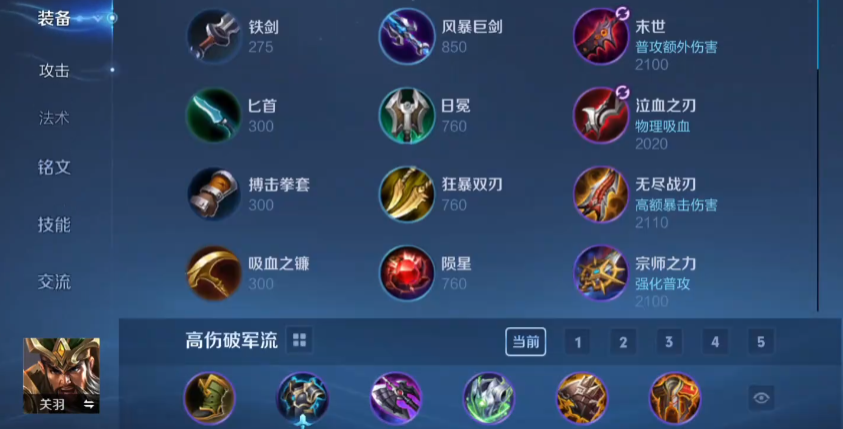 王者荣耀关羽怎么出装