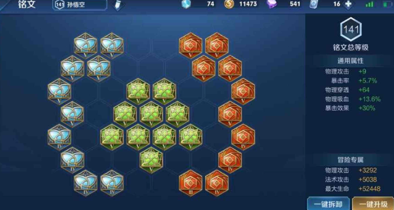铭文搭配以暴击效果和物理穿透为核心,确保孙悟空的前期发育和后期爆发伤害。红色无双铭文提供暴击率和暴击效果加成,绿色鹰眼铭文增强物理穿透,蓝色夺萃铭文则赋予物理吸血以维持续航能力。这种配置能弥补孙悟空前期的弱势,支持高效刷野并减少回城频率,从而加速经济积累。