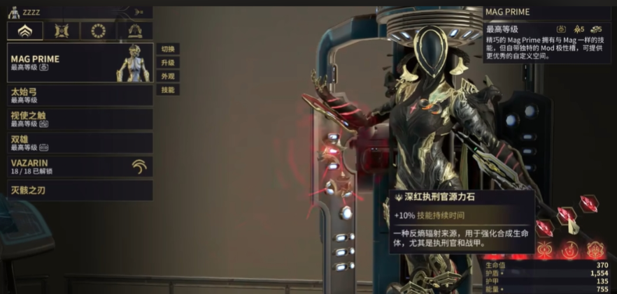 伏特(Volt)和磁力(Mag)作为补充选项,适合度过初期后的效率提升:伏特二技能疾风迅雷可加速移动和攻击速度,优化间谍任务或跑图体验,虽防御较弱但能用基础MOD弥补;磁力则以群体控制见长,一技能拉近敌人配合近战收割,二技能磁化力场提升枪械清场效率,三技能还能辅助队友护盾。两者获取难度适中,伏特为初始可选战甲,磁力蓝图可通过火卫一刺杀目标掉落,适合追求机动或控场的玩家。