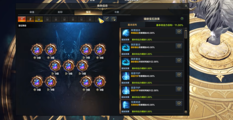 宝石与三脚架的强化是提升技能循环与伤害的重要环节。宝石方面,优先将核心蓝色技能的冷却时间宝石升至5级或7级,以优化技能释放频率,然后再考虑搭配技能伤害宝石。特别是战吼技能的冷却时间应优先保证。三脚架的选择上,优先追求战吼和雷纳西亚的气息这两个技能的关键三脚架效果。对于核心输出技能如守卫落雷、跃击、盾推,应点出增加伤害、范围或附加异常状态的三脚架;盾击则需要点出提供攻击力增益的三脚架。
