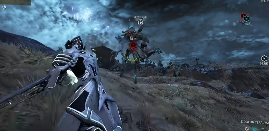 整个狩猎战斗遵循一套清晰的阶段性流程,主要分为护盾破除、关节破坏与最终捕获三个关键阶段。战斗开始时,夜灵本体被一层特殊的护盾保护,这层护盾只能通过指挥官操控增幅器进行攻击来消除。护盾破除后,夜灵会短暂倒地并发出吼叫,此时需要立刻切换回战甲,使用高伤害武器精准射击其发光的关键关节部位,兆力使有4个关节,而巨力使和水力使各有6个关节。在关节破坏阶段,还需要用到被称为气球的夜灵诱饵,它需要预先从平原的克隆尼营地获取,并通过让其吸收3个夜灵轰击使的能量来完成充能。当夜灵的所有关节被破坏且生命值见底时,必须引导充能完毕的夜灵诱饵靠近它才能完成捕获,否则目标将会逃遁。捕获成功后会掉落虚空魂、赋能和专精点数等丰厚奖励。