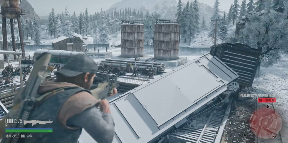 除了硬碰硬的消耗,游戏还提供了许多特殊的战术手段。注意感染者从火车厢和洞穴涌出的路线,提前在出口处布置燃烧瓶能有效阻断攻势。伐木场西侧护墙与海域形成的天然屏障可作为撤退路径,但需注意跳海可能导致角色死亡。建议占据高处平台或房顶,配合引诱装置将尸潮引导至爆炸陷阱范围内。若被尸潮包围或陷入了不利地形,突围需要果断,立即使用震撼弹或烟雾弹创造干扰,并全力向户外或摩托车方向冲刺。清理完成后,记得搜刮巢穴残留的废金属和药剂资源,该区域还关联着薛曼营地需要你的帮忙等支线任务,完成伐木场主线后会解锁更多探索内容。