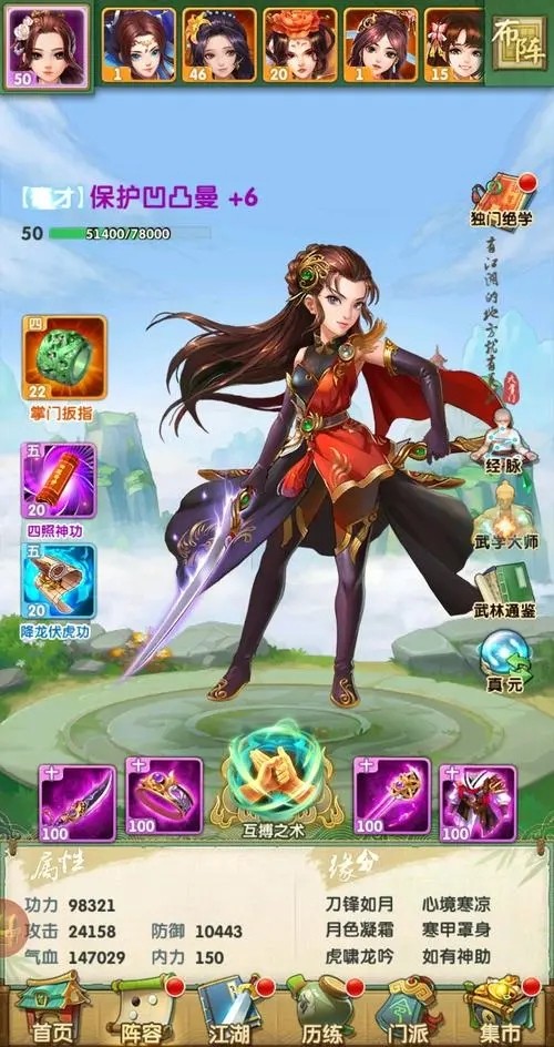 大掌门内力是核心战斗属性,直接决定武功伤害、触发内力判定、提升防御续航、影响经脉与心法效果,是决定胜负的关键属性。内力数值越高,释放武功时的伤害加成越显著,在内力比拼环节拥有绝对优势,同时能提升弟子的生存与持续作战能力,搭配合适武学与养成路线可形成稳定且强势的战斗体系。内力参与核心伤害计算,单体武功伤害由攻击、内力与武功强度共同决定,群体武功会对内力进行额外倍率放大,高内力弟子搭配高伤害系数武学,能够快速突破敌方防御造成高额输出,即便面对高防御对手,也能依靠内力加成打出稳定伤害,避免不破防导致的低效输出。内力优势会在技能释放频率与伤害上限上体现,核心输出弟子堆高内力,可让绝学与群攻技能发挥最大效果,快速清理敌方阵容。