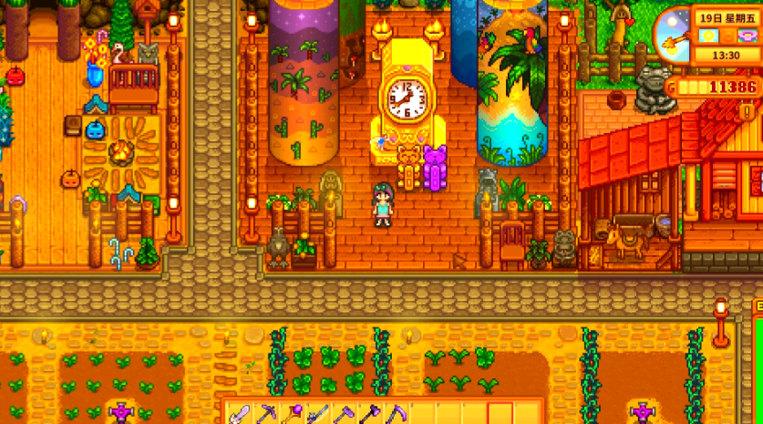 收藏与功能性消费能长期消耗资金且提升游戏完成度,在铁匠铺无限开万象晶球,补齐矿物与古物图鉴,消耗速度稳定且成就感拉满,同时可在法师塔购买各类魔法图腾与装饰建筑,终极目标是解锁黄金时钟,彻底杜绝杂草滋生与围栏损坏,解放农场维护精力。社区中心金库献祭需要持续投入金币,修复巴士与沙漠设施后,能解锁更多高消耗玩法,形成资金消耗与内容解锁的循环。
