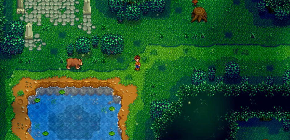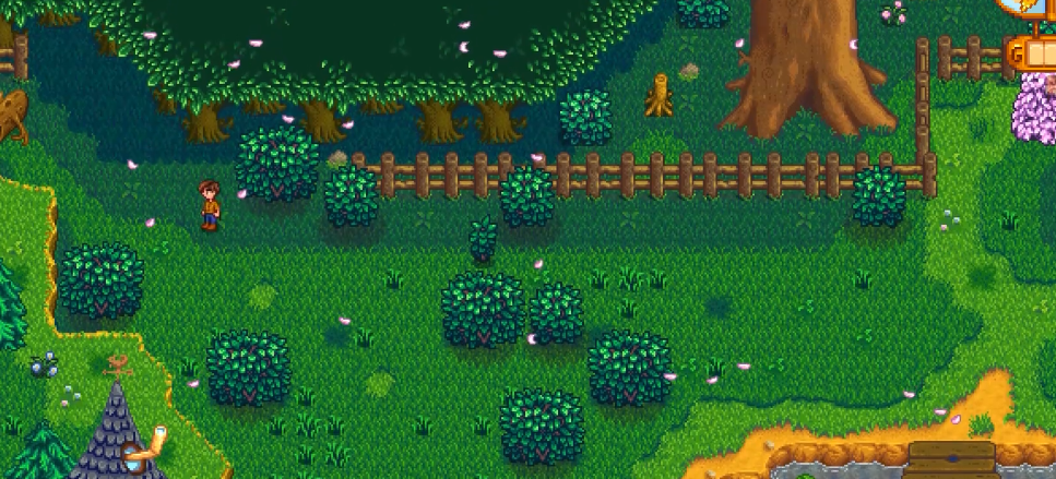 神秘森林内部每日刷新六个硬木树桩,分为明显可见的北侧四个与隐藏在南侧枝叶后的两个,全部砍伐可稳定获取硬木,是建造高级设备与扩建农场的关键材料。森林中央有一处池塘,是垂钓木跃鱼的专属点位,该鱼类用途广泛,可用于收集包任务与烹饪配方。区域内会刷新史莱姆与野生植物,击杀怪物有概率掉落粘液与稀有材料,采集植物可获得用于制作与献祭的道具,整体资源产出效率远高于普通森林区域。