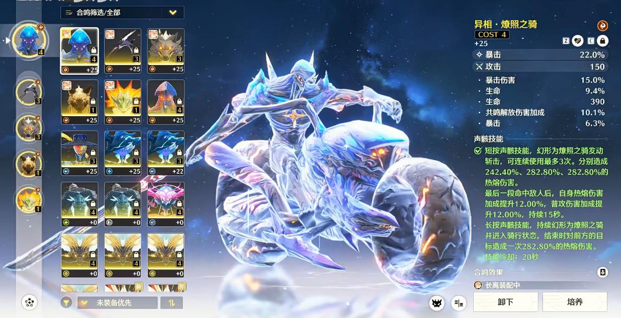 声骸与词条选择直接决定白芷在模拟宇宙的实战强度,核心套装选用隐世回光,主声骸搭配鸣钟之龟,Cost4部位主词条优先治疗加成,其余部位堆叠百分比生命与共鸣效率,副词条优先级为生命、共鸣效率、治疗加成,这套配置能兼顾奶量、生存与技能循环速度。武器优先选择奇幻变奏或异度,提升变奏触发效率与协奏能量获取,让白芷更快完成技能循环,在高压关卡中持续为队伍提供保护。技能加点需优先固有技能与共鸣回路,其次是共鸣解放与共鸣技能,保证核心治疗与增伤效果拉满,常态攻击与变奏技能可根据资源情况后续补充升级。