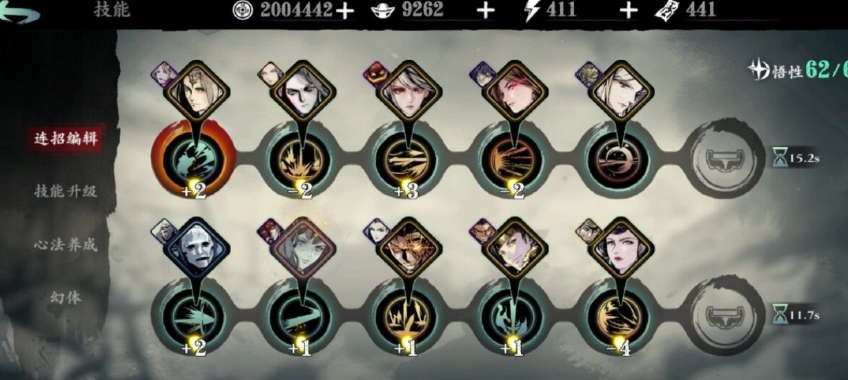 心法系统是攻击力提升的关键核心,高品质心法的等级、进阶、绝技与羁绊都能带来高额攻击增益。橙色与紫色珍藏心法基础攻击更高,橙卡珍藏比普通卡多6点攻击,心法每升一级可提升固定攻击,绝技等级提升也能增加攻击属性,魔堡故人心法绝技最高可提供55%攻击百分比加成。心法羁绊不可忽视,黑白剑羁绊、墨宝羁绊、龙五绝技等组合,能分别提供85%、20%、100%的攻击百分比,搭配铸魂效果还能额外获得5%到10%攻击加成。养成时优先升级输出向核心心法,吞噬同名卡或橙娃娃提升绝技等级,激活关键羁绊,让心法攻击增益最大化。