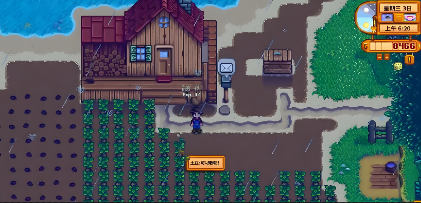 种地是最基础的赚钱方式,尤其是春季的防风草和土豆,它们生长周期短,回报快。每天记得浇水,别让作物被乌鸦偷吃,早点造个稻草人保护农田。钓鱼也是前期来钱快的好办法,尤其是下雨天去海边或河边,钓到的鱼可以直接卖掉,运气好一天能赚好几千。