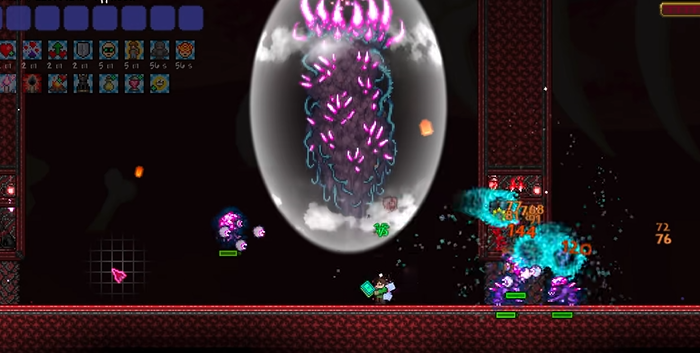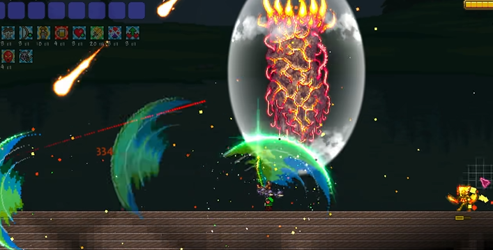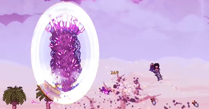 怎么打才是真正的挑战。这四个大柱子一开始都是无敌的,外面套着一层护盾。你得先对付柱子周围不断刷出来的、属于它那个阵营的各种小怪。每个柱子都有自己独特的小怪队伍,比如日曜柱旁边可能有特别凶的千足蜈蚣,但它只打空中的目标,所以老老实实待在地上清小怪就安全。 星尘柱的小怪会不断分裂,需要控制一下输出的伤害。 你需要击败足够数量的小怪,把柱子下面的那个护盾能量条清零,它的护盾才会炸开,这时候你才能直接攻击柱子本身的核心。 好消息是,打这四个柱子的顺序没有硬性规定,你可以先打你觉得最容易的,或者先打跟你玩的职业相对应的那个,用掉落的专属碎片早点做高级装备。