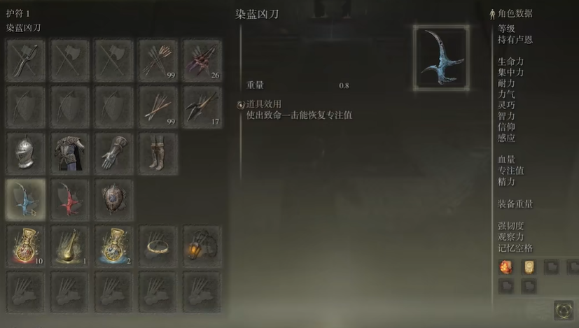 除了消耗性道具,获取具有特殊效果的装备是构建可持续回蓝体系的重要途径。游戏内部分武器与护符附带了击败敌人后恢复蓝量的效果,例如染蓝凶刀能在处决或背刺敌人时回蓝,而灭洛斯剑和祖灵角护符则能在击杀敌人后提供蓝量回复,这些装备能有效缓解在连续战斗中的蓝耗压力。直接提升蓝量上限或回复效率的护符也值得关注,例如蓝琥珀链坠可以增加最大专注值,而恩惠蓝露滴护符等则能提供持续的自然回蓝效果。专注于收集此类装备,能从根本上改善前期蓝量紧缺的困境。